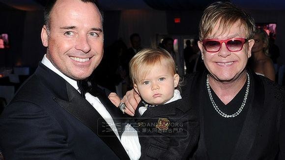 艾尔顿·约翰(右)与他的伴侣和儿子。英国同志歌手艾尔顿·约翰(Elton John)与同性伴侣大卫·费尼什(David Furnish)两年前在代孕母亲的帮助下喜获爱子Zachary,而明年他们将迎来第二个代孕孩子。